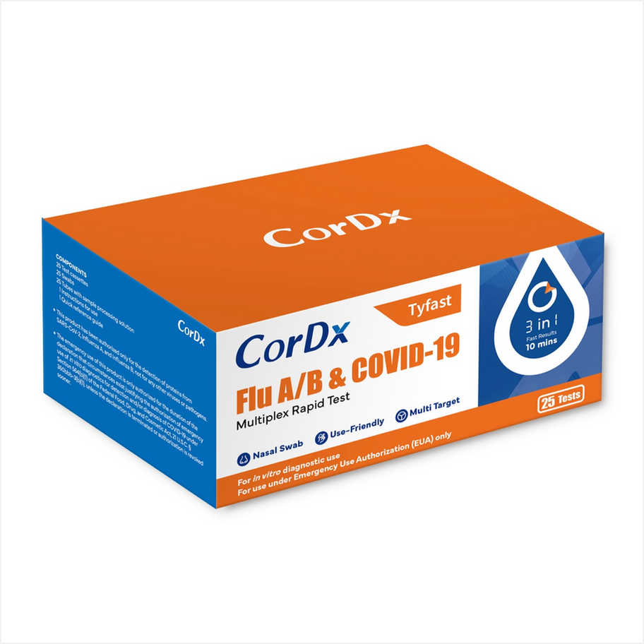 CorDx® Tyfast Flu A/B & COVID-19 - 25 Test Kit (CLIA Waived)